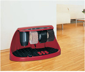 Lever Heute Easy Comfort Shoe Shine Machine • Case: graphite • Dimension: 49 cm x 32 cm x 31 cm width x depth x height • Polish dispenser: 0.2 liter with plastic ball valve • 2 polishing brushes • Ø 13 cm x 6 cm (diameter x width) • Weight: 10 kg net • Contact switch: on the case, Made in Germany