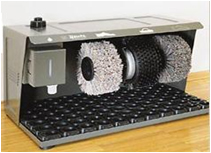 "Lever Heute Shoe Shine Machine Ronda 30 Standard Industrial & Heavy Duty • Case: agate-grey or graphite. • Colors of the door: agate-grey or graphite. • Brushes: 2 polishing brushes, 1 pre-cleaning brush, Ø 13 cm x 7 cm, diameter x width. • Polish dispenser: 0.75 liter with ball valve. • Weight: 21 kg net, 23 kg gross. • Starter: Sensor with timer. • Power supply: 230 volt. Made in Germany"